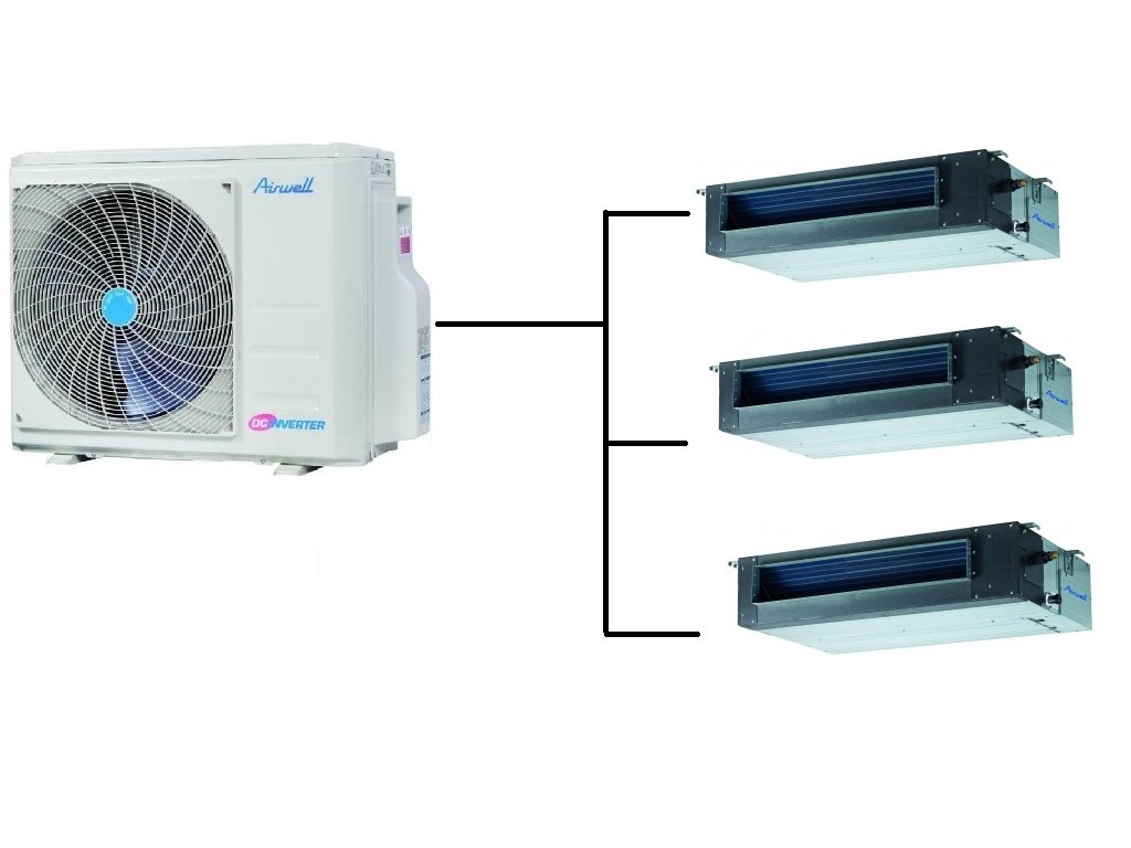 Kanálová Klimatizace Airwell 1+3 (3,5kW + 3,5kW + 3,5kW) Multi-split R32