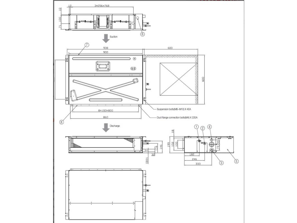 | Rozměry venkovní jednotky: | (d) 790mm (š) 285mm (v) 548mm |