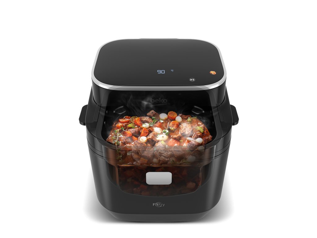 Horkovzdušná fritéza Beko FRL 5474 B kombinuje zdravé smažení s pokročilou technologií Steam FitFry, která využívá páru pro ještě šťavnatější výsledky. S kapacitou 7,6 l a výkonným 2570W motorem snadno připravíte velké porce jídla s minimálním množstvím oleje. Dotykový displej a přednastavené programy zajistí intuitivní ovládání, zatímco funkce sušení rozšiřuje možnosti využití fritézy. Odnímatelný koš vhodný do myčky, ochrana proti přehřátí a udržení teploty jídla přispívají k pohodlné obsluze. Moderní černý design skvěle zapadne do každé kuchyně.