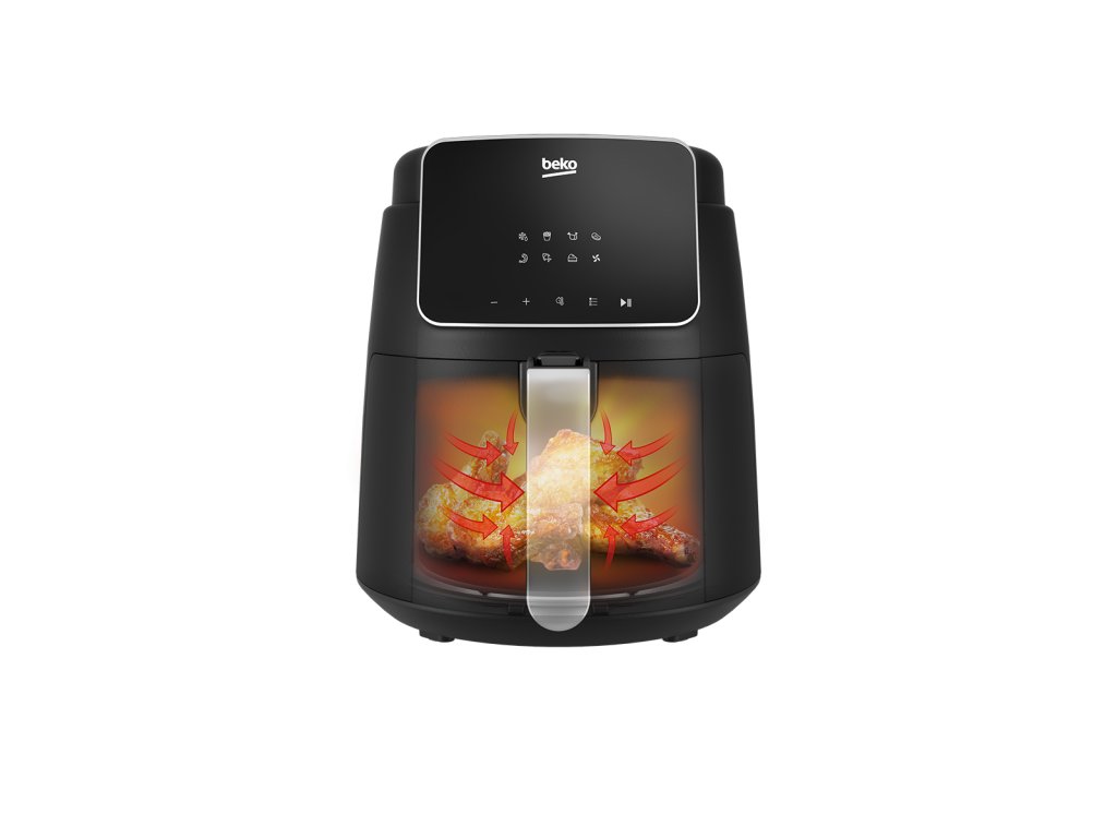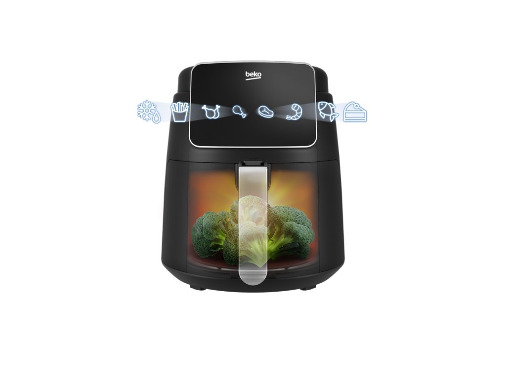 Horkovzdušná fritéza Beko FRL 2244 B přináší zdravější způsob smažení s minimálním množstvím oleje, což zajišťuje křupavé a chutné pokrmy bez zbytečného tuku. Díky dotykovému displeji a přednastaveným programům je ovládání jednoduché a intuitivní. Celková kapacita koše 4,7 litru umožňuje připravit dostatek porcí najednou, zatímco nepřilnavý hliníkový povrch zaručuje snadnou údržbu. Výkonný příkon 1500 W a nastavitelná teplota zajistí dokonalou přípravu každého jídla. Kompaktní design v elegantní černé barvě skvěle zapadne do každé moderní kuchyně.