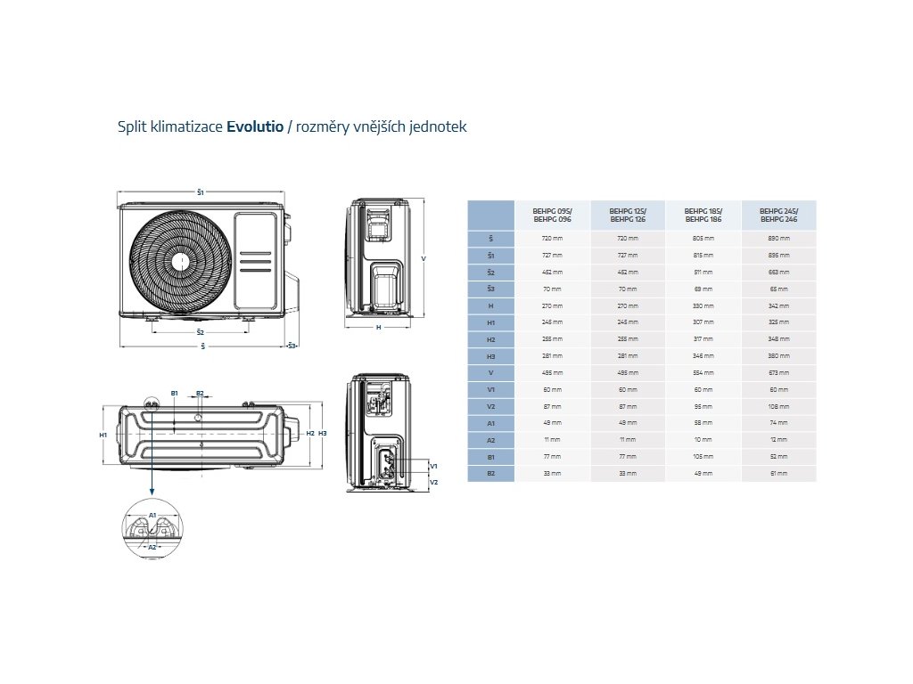 Rozměry venkovní jednotky: | (d) 765mm (š) 555mm (v) 303mm |